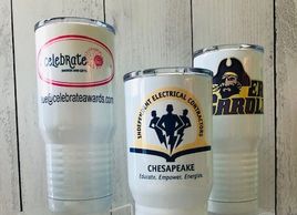 Sublimation allows us to print color images on a polyester surface. So what does that mean? We can create eye-popping products with vibrant colors for images, text, and even photos. The photo gallery below shows you samples of tumblers, face masks, ceramic mugs, ornaments, and awards.